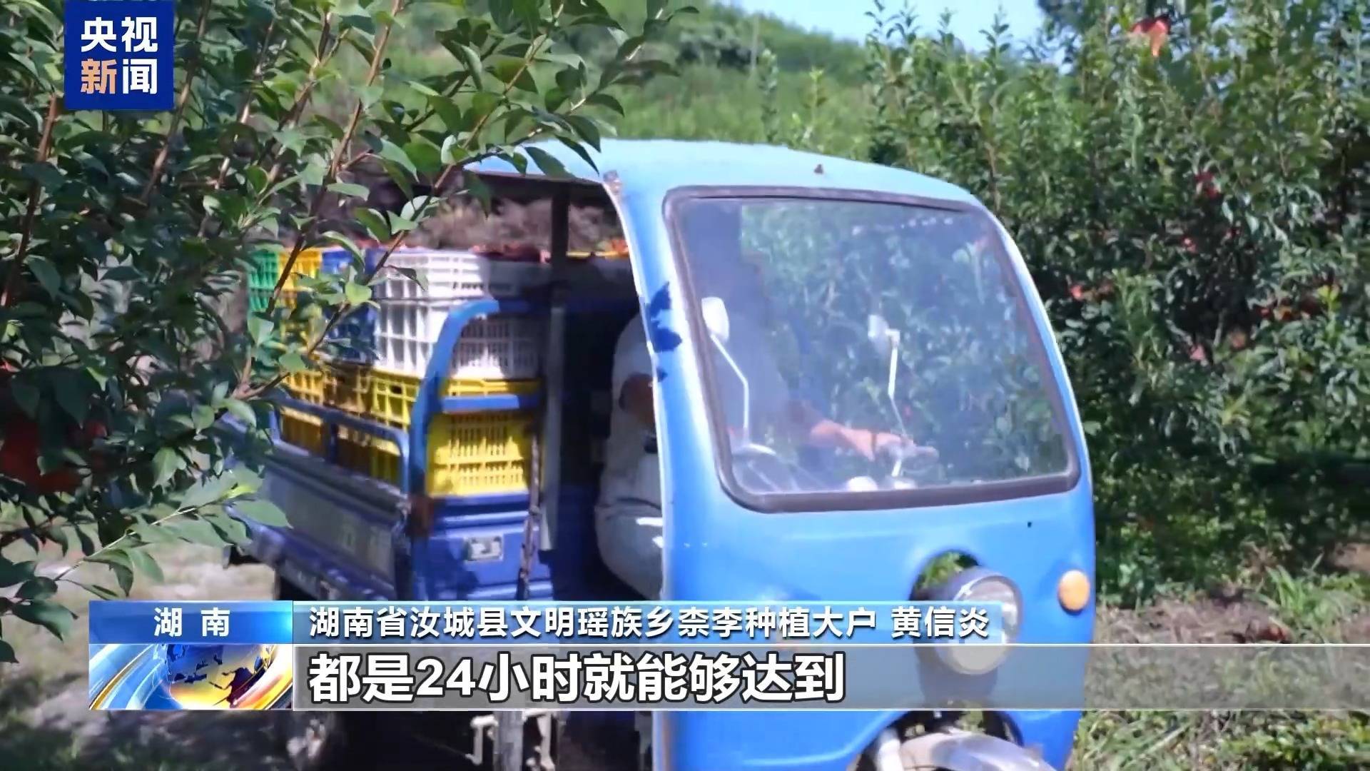 湖南省汝城县文明瑶族乡柰李种植大户 黄信炎:一般我们发到粤港澳、长三角这些地方都是24小时就能够送达,偏远地区大概是要48小时。我们都不需要通过冷链,因为很快就到消费者手里了。
